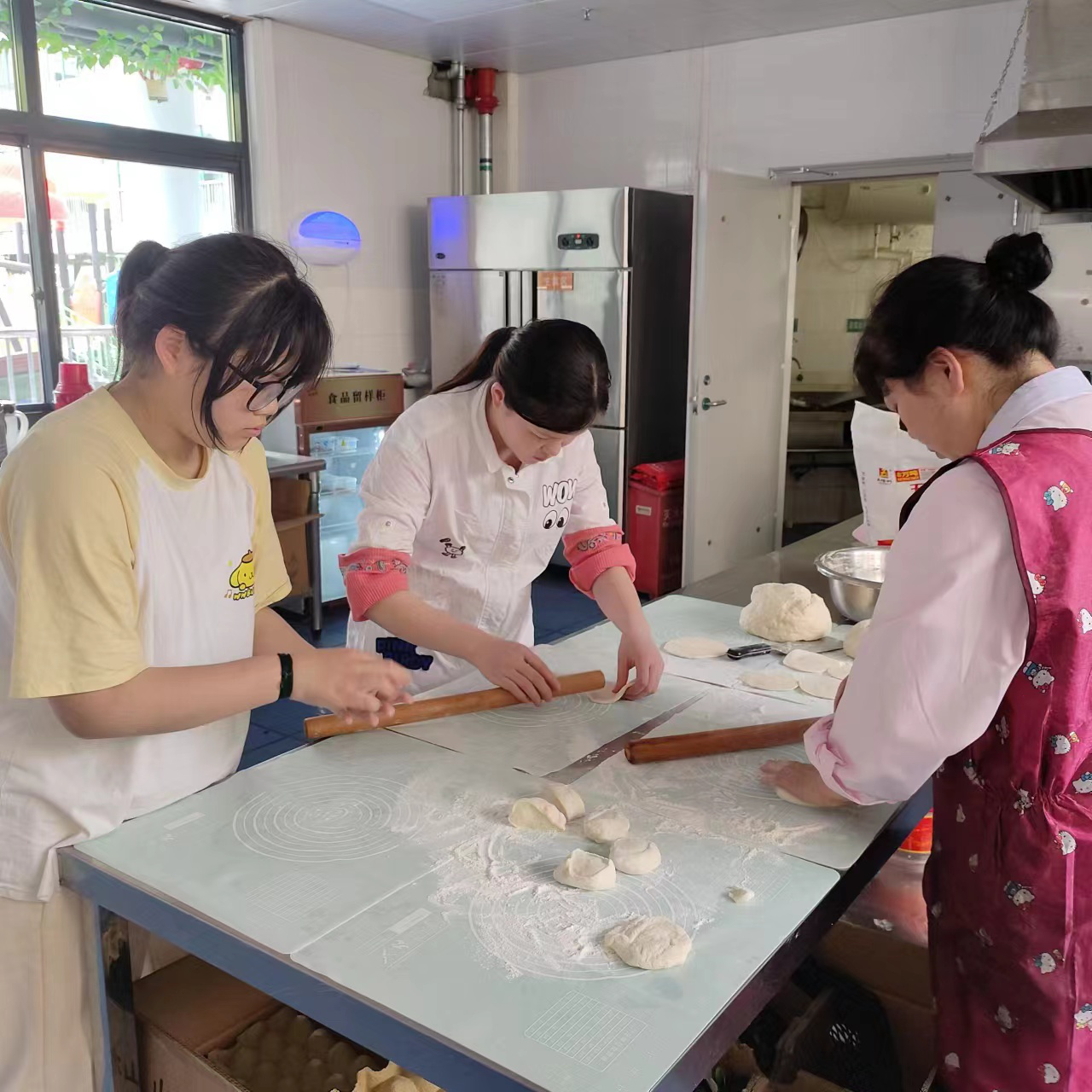 首先,老师们给孩子们讲解制作包子的基本步骤和注意事项,然后亲自示范如何擀皮、包馅、捏褶。认真听了老是的讲解后,孩子们跃跃欲试。